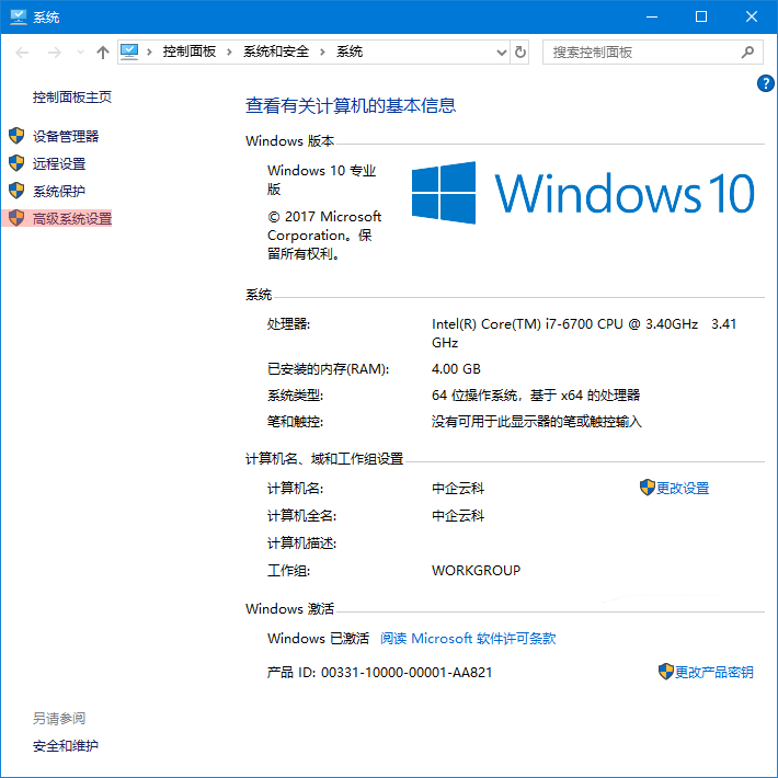 进入: 控制面板 → 系统和安全 → 系统