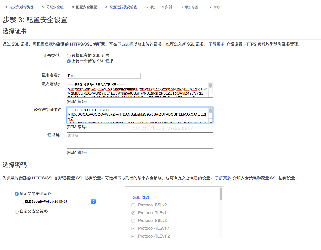 选择使用后端证书的话,要按之前的步骤重新创建一个SSL证书,输入证书名和公有密钥证书即可。