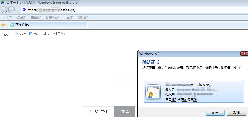 选择这个证书,点击OK,顺利访问,否则访问会被拒绝。